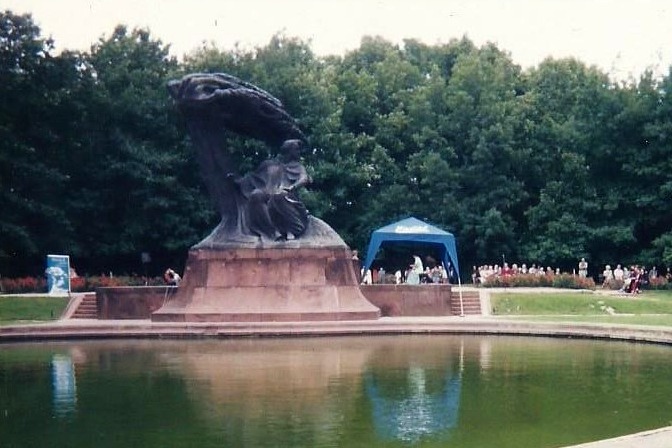 ワルシャワのワジェンキ公園のショパン像下でのコンサート、